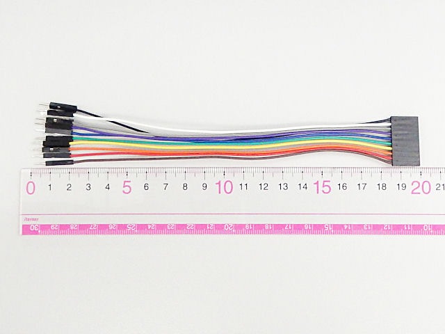 2.54mmピッチのコネクタ付ケーブルです。メスのコンタクトは 1x10のハウジングにセットされています。オスのコンタクトは1Pずつ分かれています。ケーブル色は抵抗のカラーコードと同じ番号になっています。