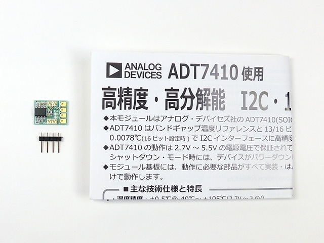 ◆モジュール基板は動作に必要な部品がすべて実装・はんだ付けされ、電源、GND、SCL、SDAの4線を配線するだけで動作します。ブレッドボードでの使用に便利な細ピンヘッダ(4ピン)が付属しています。◆ 主な仕様