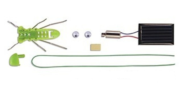 環境にやさしい太陽光発電と、携帯電話にも使われている振動モーターで動くばったのキットです。光があたるとブルブルとコミカルに動き回ります。(蛍光灯では動きません)