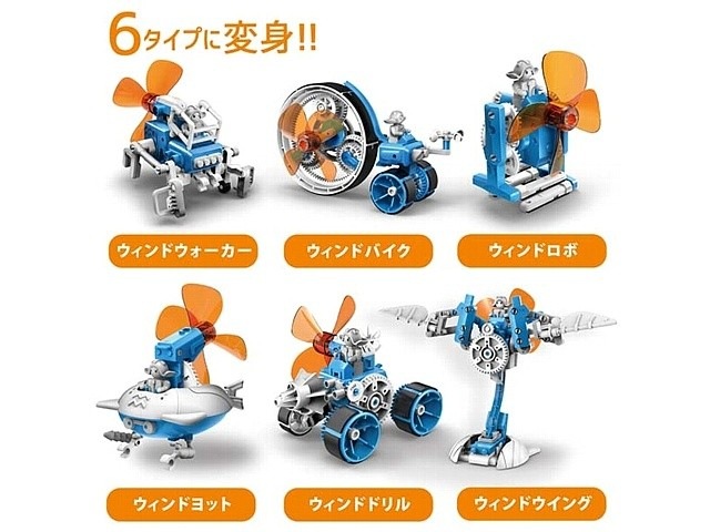 ウィンドウイング、ウィンドドリル、ウィンドウォーカー、ウィンドバイク、ウィンドロボ、ウィンドヨットの6タイプに組み替えて、色々な動きを楽しめます。