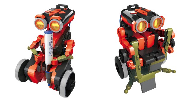 パソコンを使わないプログラミングキットです。頭部の5つのボタンで前進やバック、右左折などの命令を入力してプログラミングします。