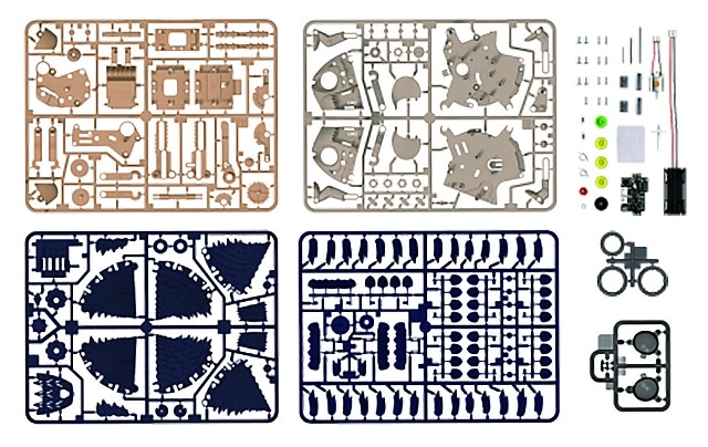 ◆ 手ばたきの音などに反応し、ギア機構などのはたらきで前進後退やでんぐり返しなどいろいろな動きをします。【動作モードは3種類】