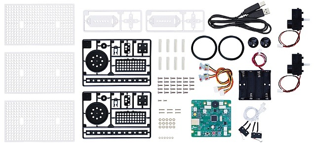 光センサー2個、タッチセンサー2個を搭載したボディー設計はそのままに、プログラム作成は従来のWindows、Macに加えて、Chromebookでもプログラミングできるようになりました。