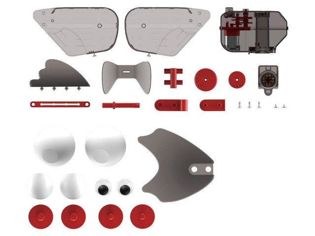 やわらかな素材でできたひれと、発泡スチロール製の大きな目が特徴の金魚形ロボットのキットです。水に入れると浮かびモーターの力でひれを動かしてプカプカゆらゆら泳ぐ様子はとてもかわいく、大人も子供もいやされます。つくって、あそんで、モノのしくみを楽しく学べるのがコンセプトの商品。子ども達の好奇心を刺激するような工夫が詰まっています。・使用電池:単3アルカリ電池×1本(別売)