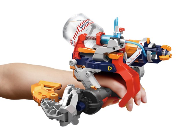 右手、左手、どちらでも装着することができます。さあ、サイボーグブラスターを装着して冒険へ出発だ!