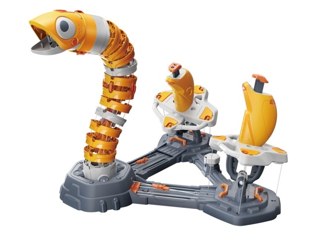 にょろっとアームにはモーターやギアではなくワイヤーを使っているので、まるで生き物のようなリアルさでくねくねと動きます。また、先端のヘッドをグリップに交換すると 3 つのツメのロボットアームに変身!モノを掴んで運んだり、投げたりして遊ぶことができます。